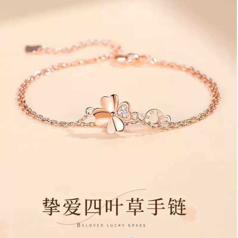 Bailing Jewelry Real Gold Plated Bracelet Four-Petal Flower Zircon Jewelry Four-Leaf Clover Flower Bracelet for Women Gold Bracelet