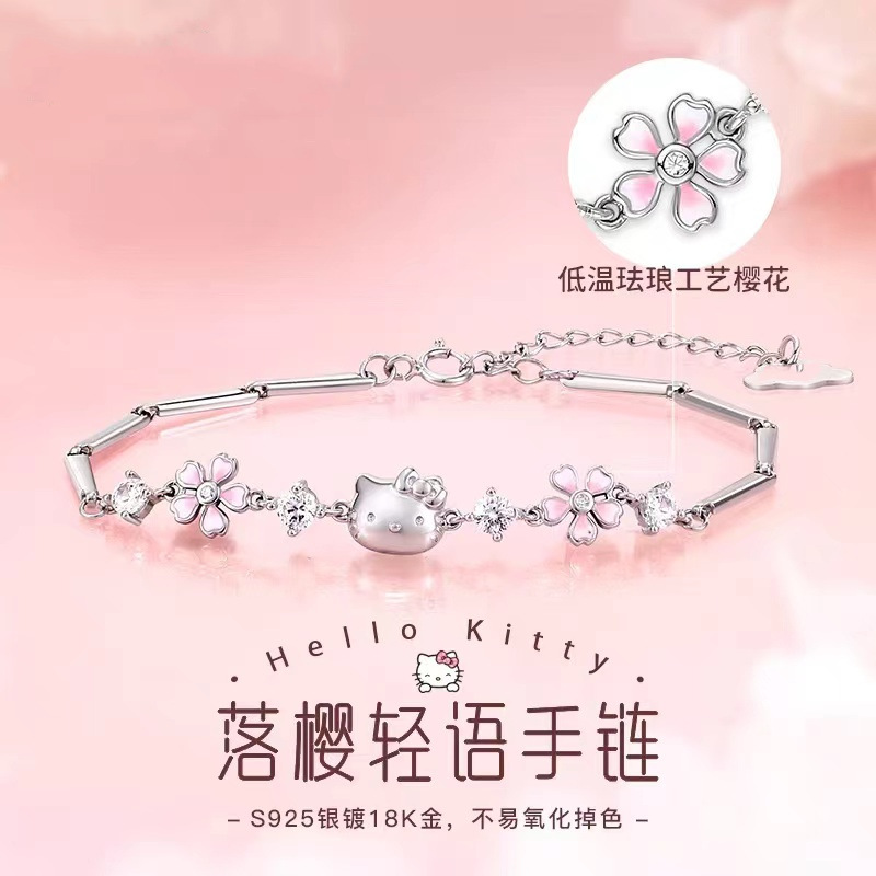 Three-Dimensional Solid High-End Hello Kitty Cherry Blossom Bracelet for Women, Light Luxury Niche Sweet Jewelry Wholesale