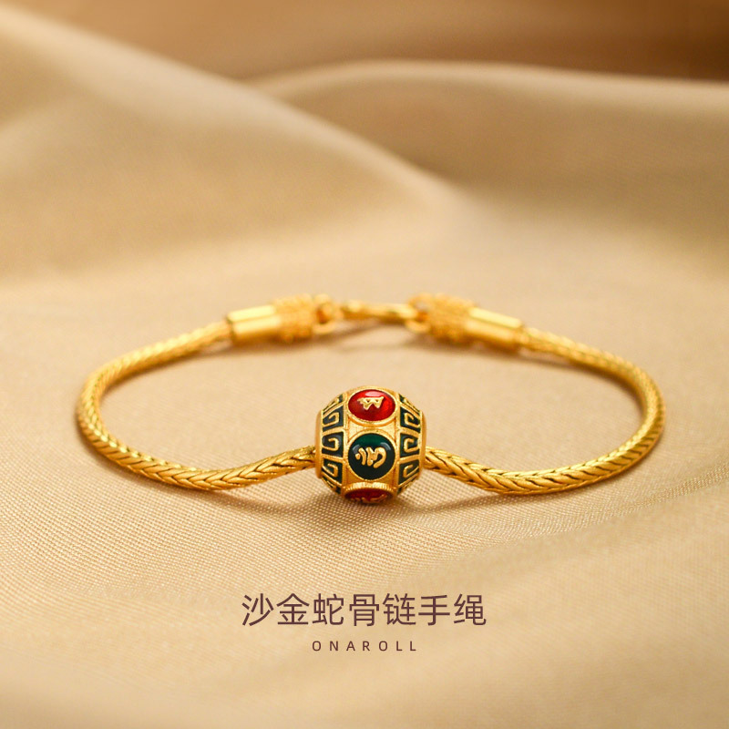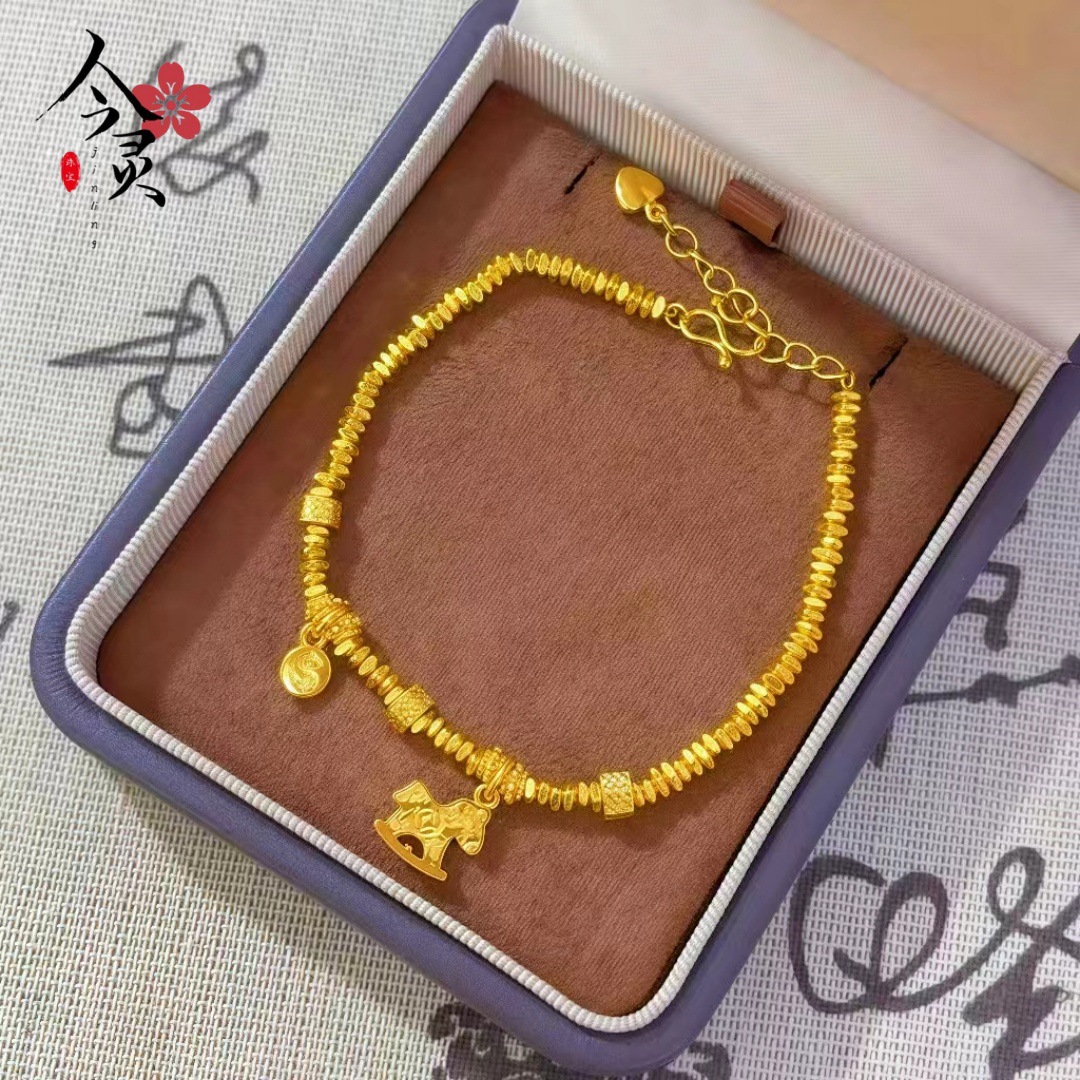 One-Color Sand Gold Jewelry Inside and Outside Manufacturer Fashion 2023 New Sand Gold Bracelet Small Pixiu Copper Gold-Plated Round Bead Bracelet