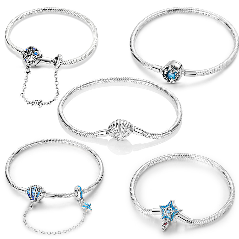 Manufacturer Wholesale Starfish Shell Bracelet Summer Ocean Style DIY Basic Bracelet Silver Plated Safety Chain Snake Bone Chain