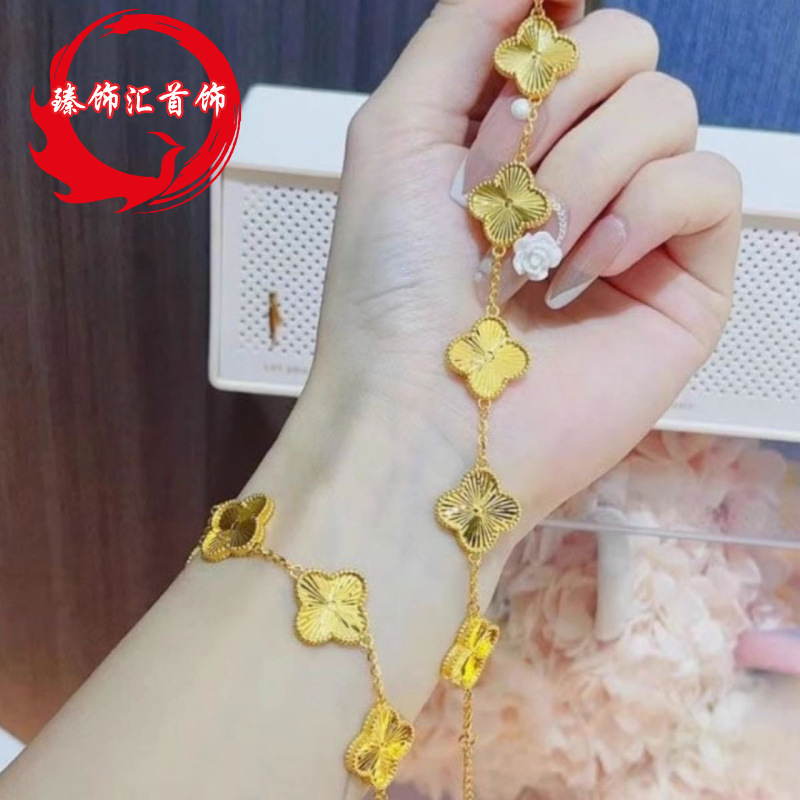 Vietnamese Sand Gold Bracelet Five-Flowered Four-Leaf Women's 999 Copper Alloy Clover Jewelry Valentine's Day Gift for Girlfriend