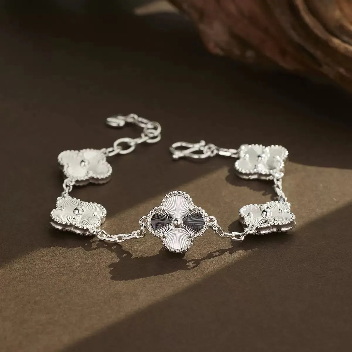 Beloved Four-Leaf Clover Sterling Silver Bracelet for Women, Clover Double-Layer Bracelet, Valentine's Day Birthday Gift for Girlfriend
