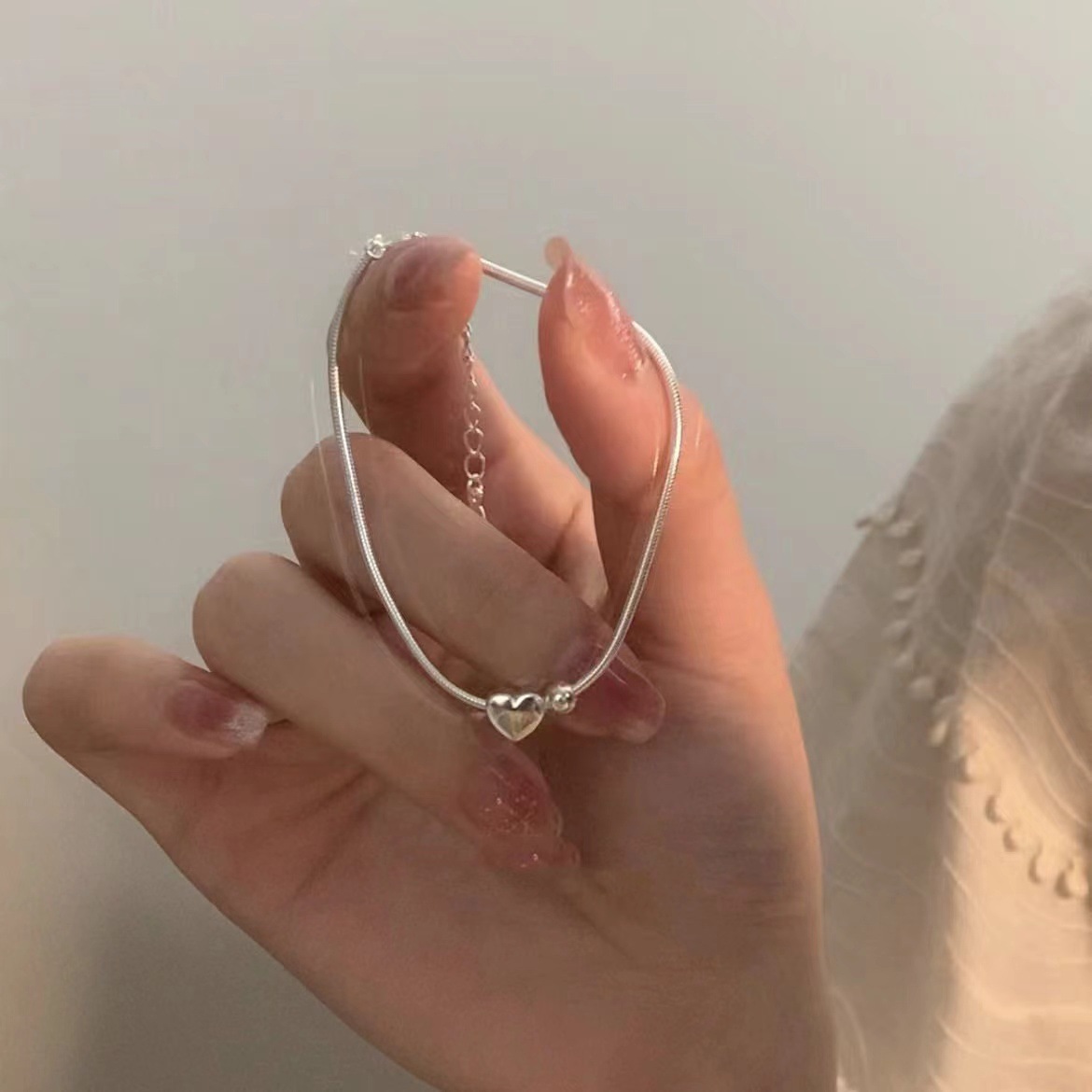 New Style 925-plated Sterling Silver Love Small Silver Beads Bracelet Niche Design Simple Snake Bone Chain Korean Style Bracelet Elegant