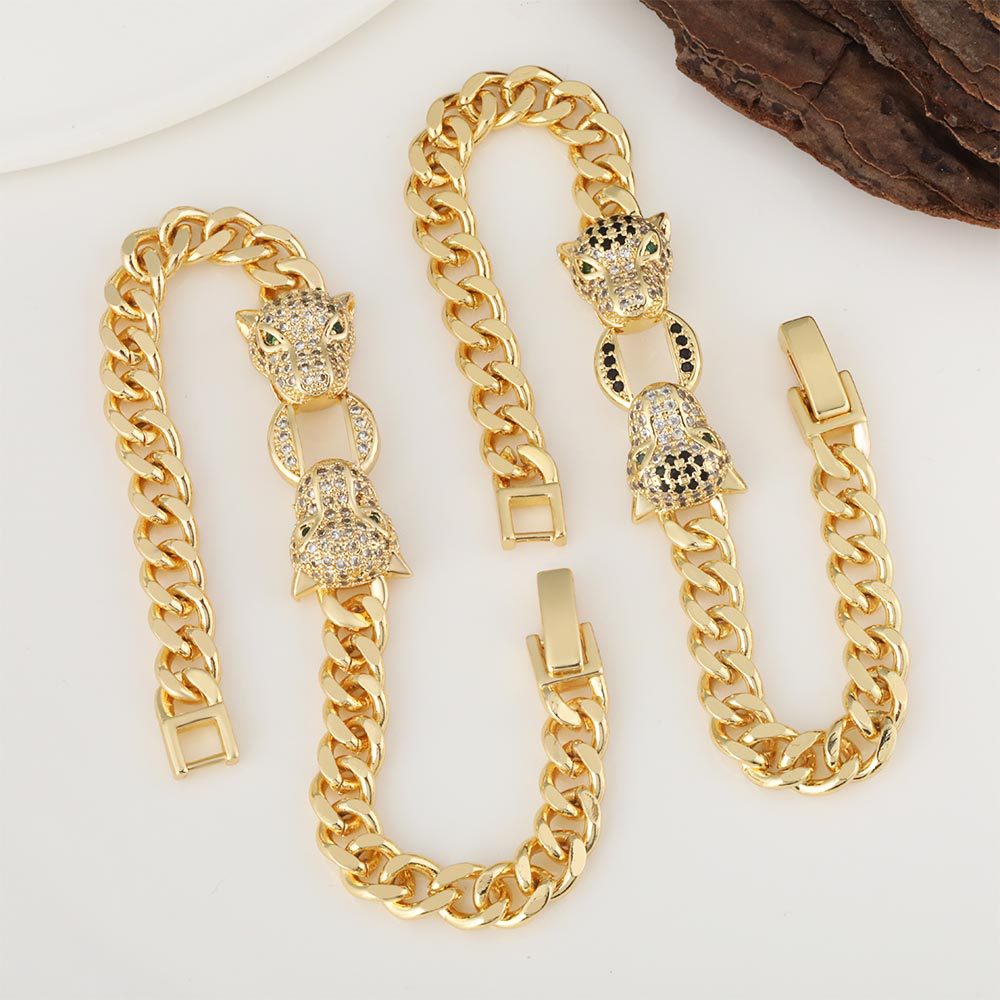 European and American Hot-selling Double Leopard Bracelet Men's Golden Color Diamond Jewelry Hip-hop Punk Personality Fashion Thick Bracelet