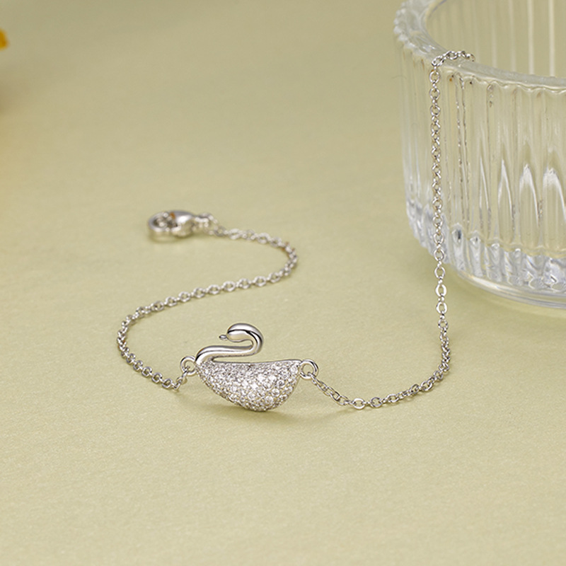 Cross-Border Fashion Simple Jewelry Korean Style Swan Adjustable Women's Bracelet Micro-Inlaid Zircon Personalized Bracelet Crystal Handmade