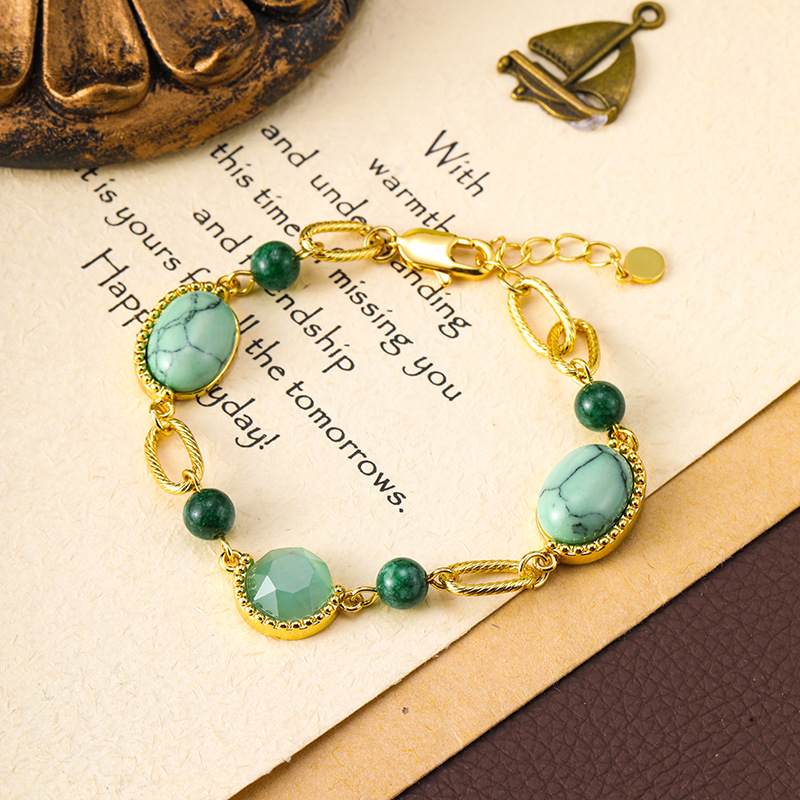 New summer vintage natural stone bracelet beaded niche high-end fashion medieval bracelet wholesale copper plated real gold
