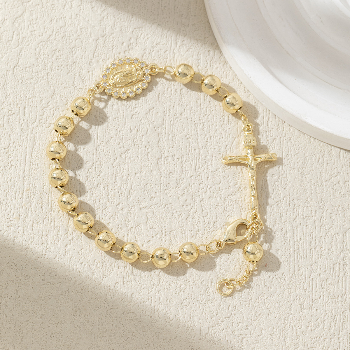 European and American Cross-border Cross Micro-inlaid Bead Chain with Diamond Women's Copper Gold Bracelet Light Luxury High-end Gift Jewelry Gift