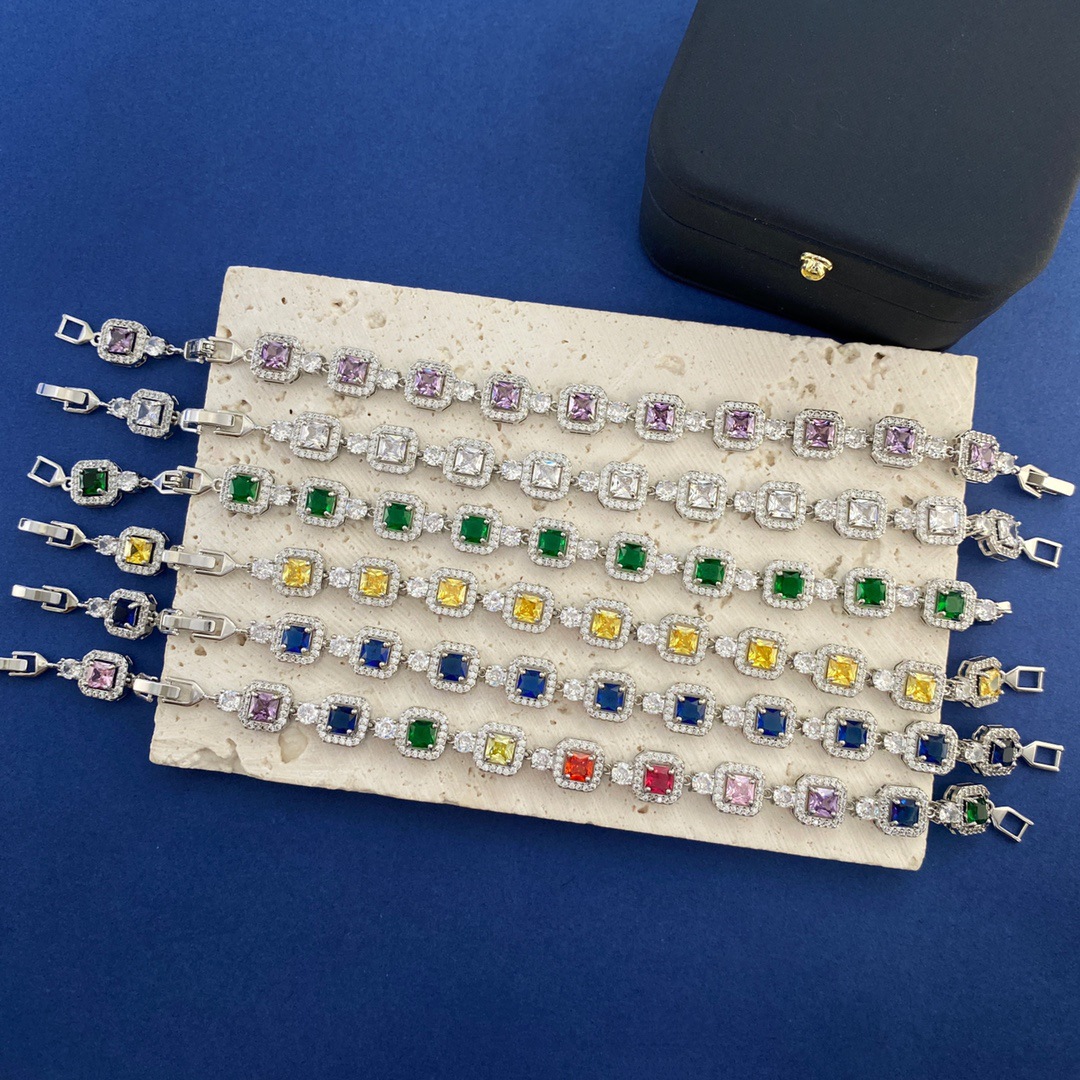 Unmarked Fashion Korean Style All-match Exquisite Shining Geometric Square Crystal Zircon Diamond Bracelet