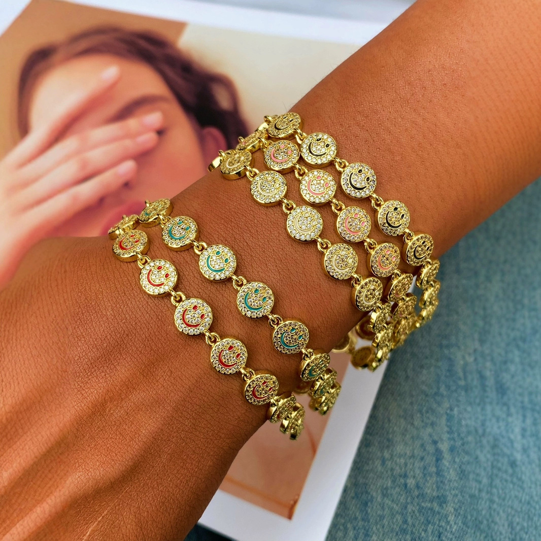 European and American Cross-Border Real Gold Electroplated Flower Smiley Face Bracelet Niche Design Fashion Oil Dripping Hand Jewelry Women's Accessories Wholesale