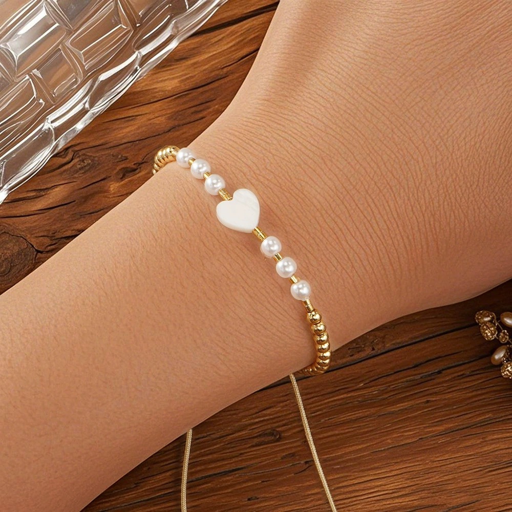 Cross-Border Popular Fashion Heart Element Niche Beaded Hand-Woven Bracelet for Women Suitable for Valentine's Day and Mother's Day