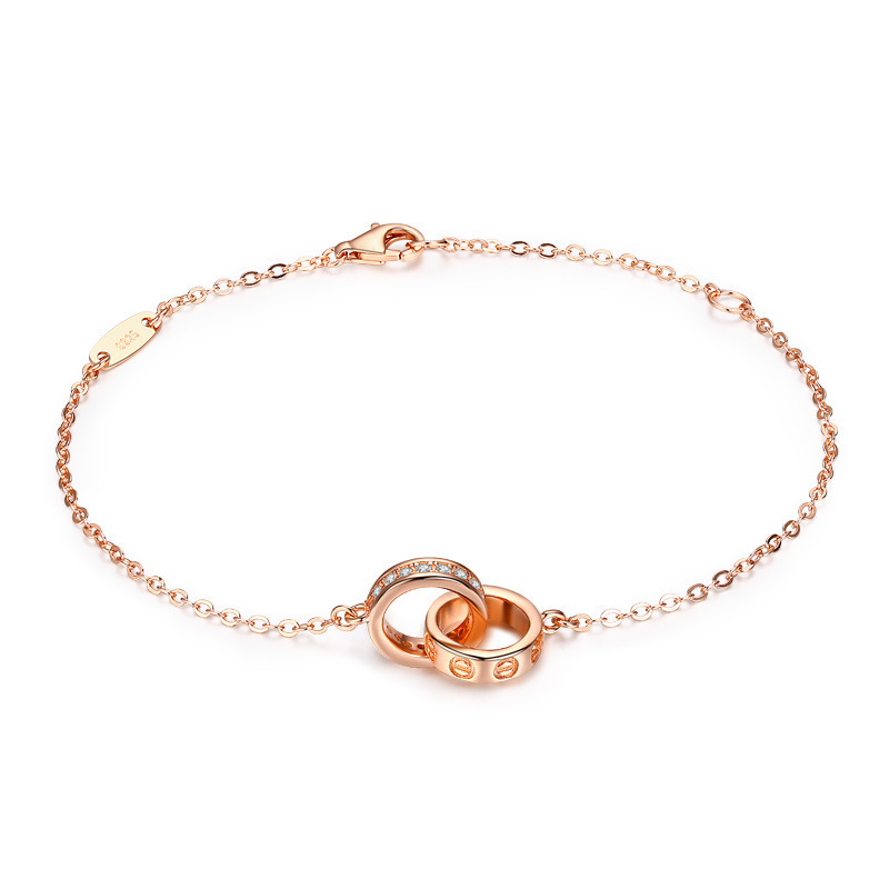 Double-Ring Bracelet for Women, Rose Gold, Korean Version for Students, Simple Stylish, Versatile Forest Style, Fresh Bestie Gift Chain