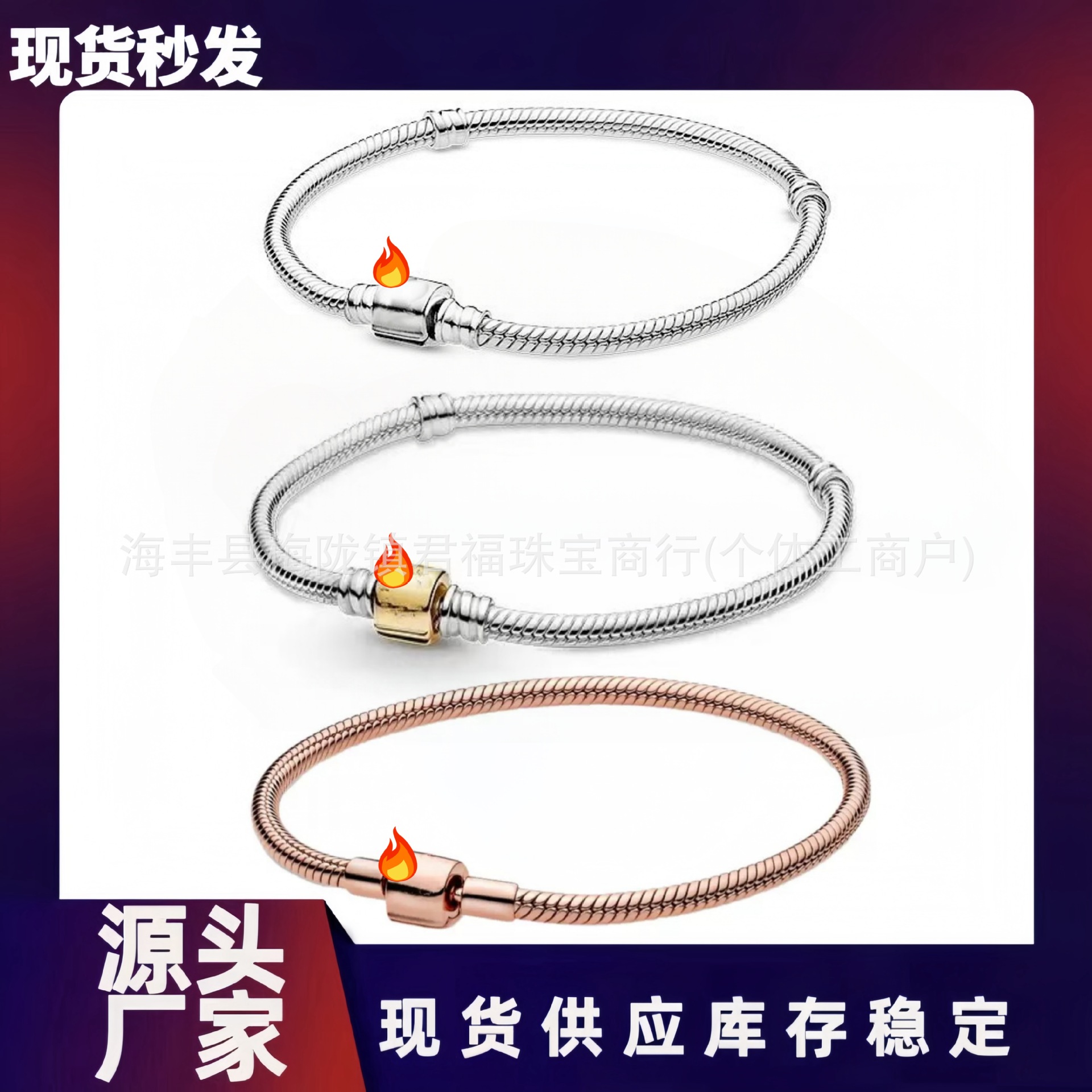 Panjia 925 silver basic with barrel-shaped chain buckle snake bone chain two-color barrel buckle snake bone chain bracelet DIY beaded light luxury