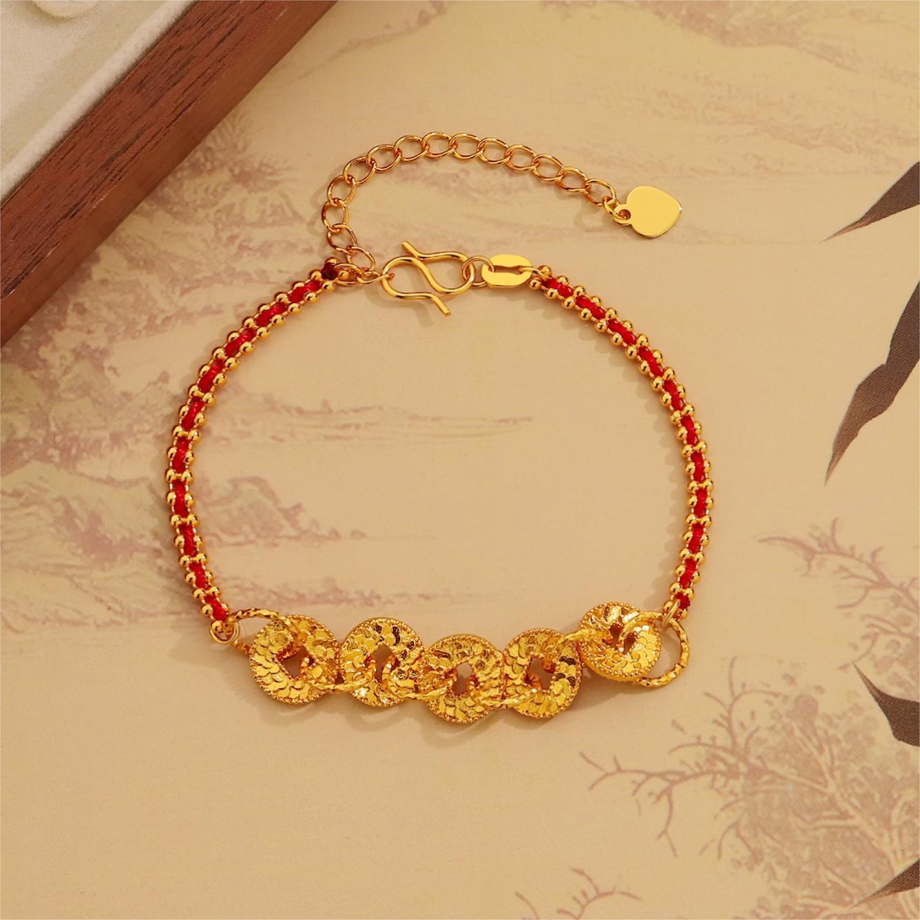 Ice-Crushed Coin Red String Bracelet for Women, Unique Fashion New Chinese Style Hollow Design, Niche Temperament Light Luxury Jewelry