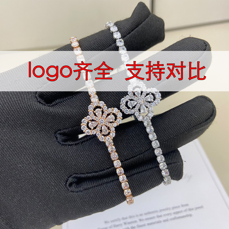 High-End Tennis Hw Clover Bracelet for Women, Celebrity Style Full Diamond Bracelet, Light Luxury Cross-Border Factory Direct Sale