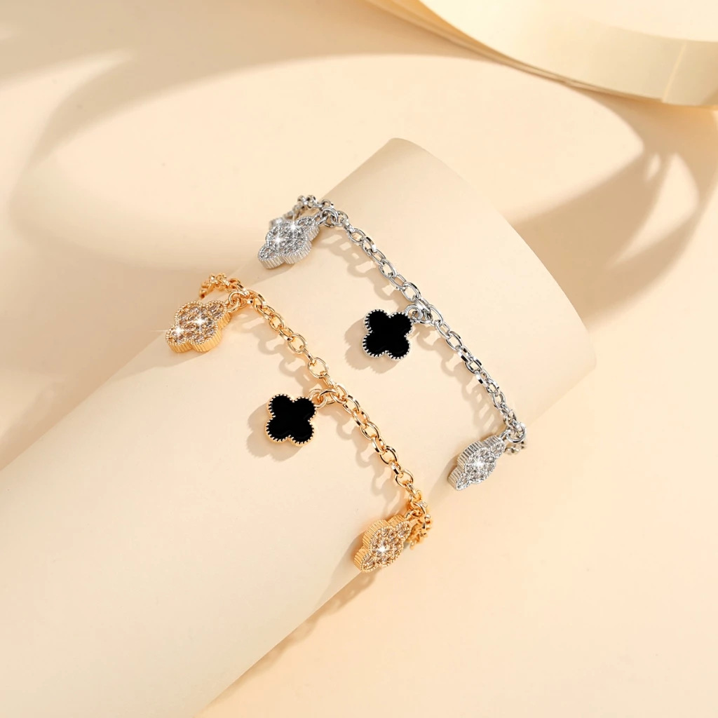 Four-Leaf Clover Bracelet Cross-Border Popular Lucky Flower Bracelet Women's Copper Gold-Plated Oil Dripping High-End Hand Jewelry Wholesale Ready Stock