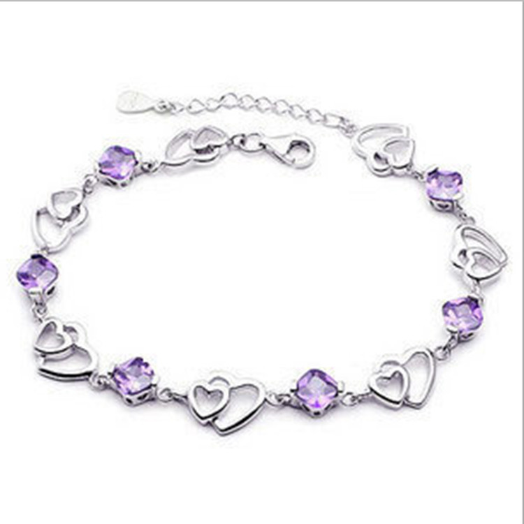 Korean Style Amethyst Heart Title Bracelet for Women Niche Fashion Versatile Double Heart Inlaid Zircon Hand Jewelry Foreign Trade Supply