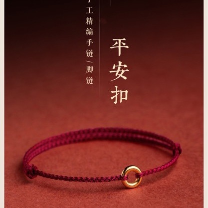 18K Gold-Plated Safety Buckle Thin Red Rope Bracelet for Women's Zodiac Year Braided Bracelet Anklet for Women's Year of the Dragon Male Couple Gift