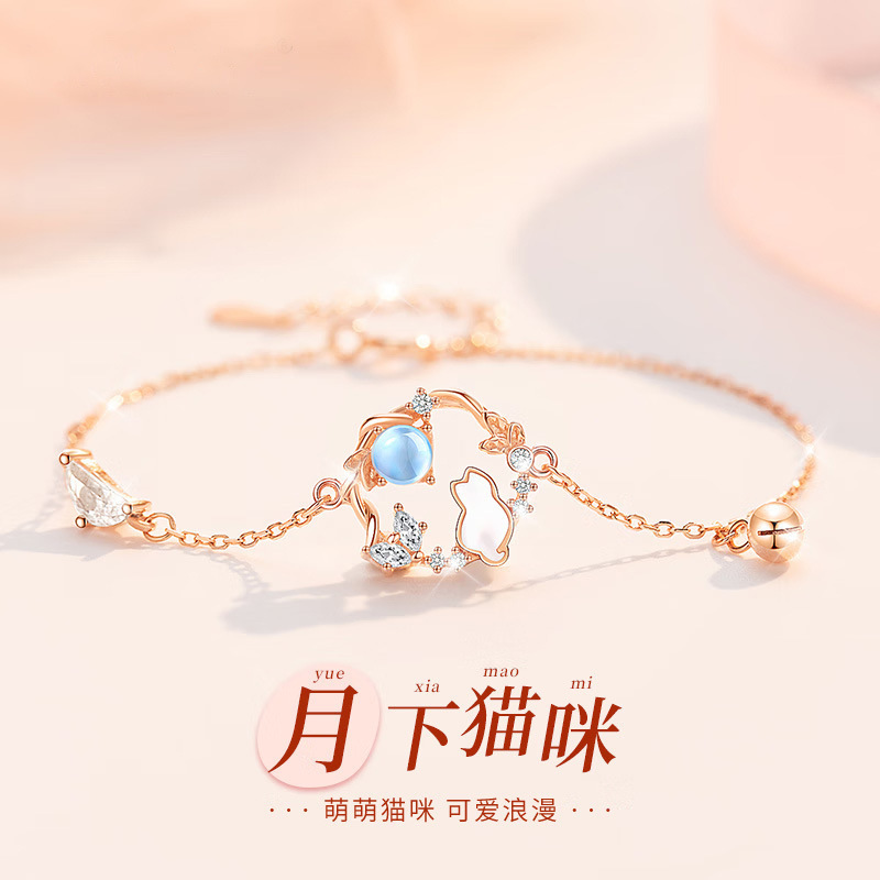 Moon Cat Bracelet Women's Light Luxury Niche Design Moonstone Bracelet Fashion Fresh Girl Cute Kitten Bracelet