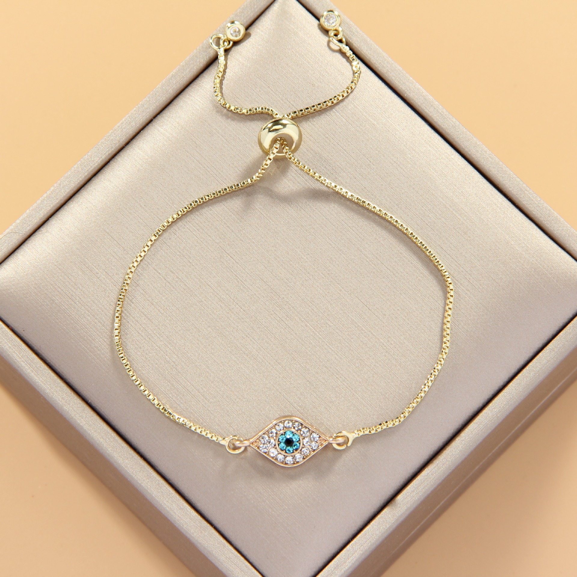 Color-Preserving Cross-Border Foreign Trade Blue Diamond Devil's Eye Bracelet for Women in Southeast Asia, Simple, Fashionable and Versatile, Pull-Out and Adjustable