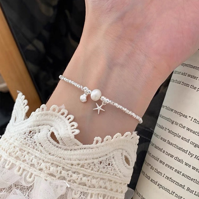 Shell Shattered Silver Pearl Bracelet Light Luxury High-value Student Party Korean Style Sweet Star Tassel Design Women's Bracelet