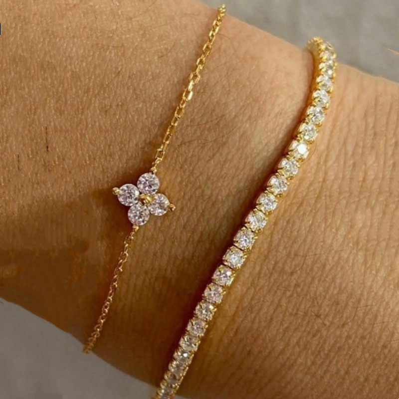 Cross-Border Women's Fashion Simple Rhinestone Chain Zircon Inlaid Flower Metal Chain Temperament High-End Bracelet Wholesale