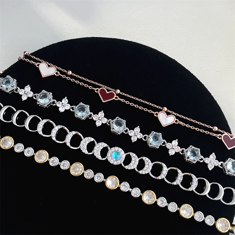 French-Style Ultra-Shiny Exquisite Flower Heart Star Moon Mother-Of-Pearl Bracelet for Women, Fashionable Versatile Light Luxury Exquisite Jewelry
