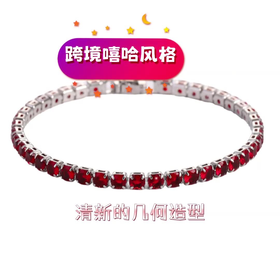 Cross-Border Hip-Hop Zircon Bracelet Zircon Anklet Simple Bracelet Gift Live Supply Hiphop Trendy Brand Jewelry