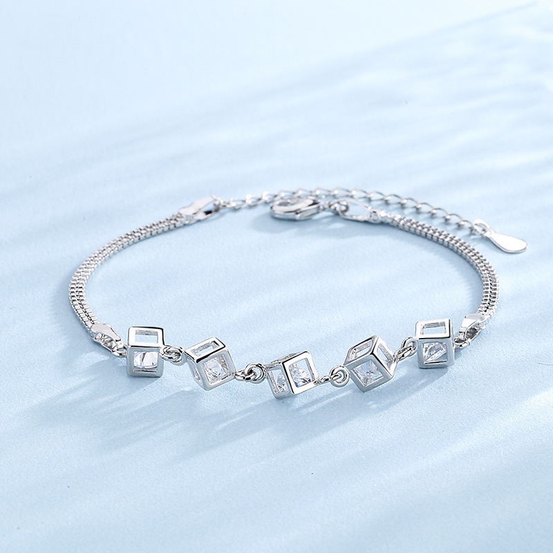 Elegant and Fashionable Zircon Square Geometric Bracelet for Women Love Rubik's Cube Crystal Personalized Versatile Bracelet Style Hand Jewelry