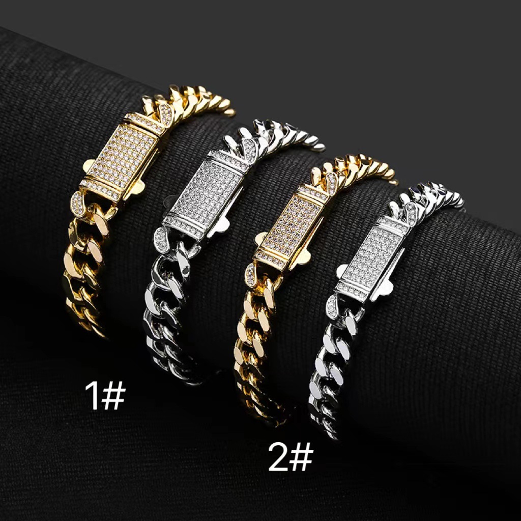 European and American Cross-border Copper Micro-inlaid Zircon Bracelet Jewelry Miami Hip-hop Cuban Chain Spring Buckle Men's Jewelry Bracelet