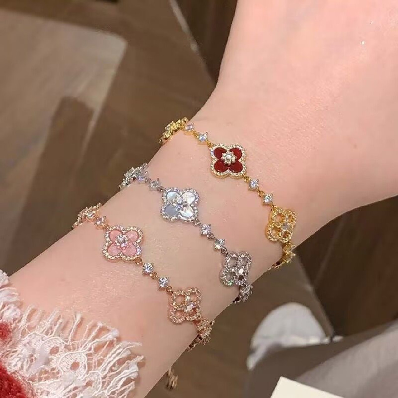 New Zircon Four-Leaf Clover Bracelet for Women, Summer Fresh Floral Hand Accessory, Internet Celebrity Style, Versatile Commuting Accessory