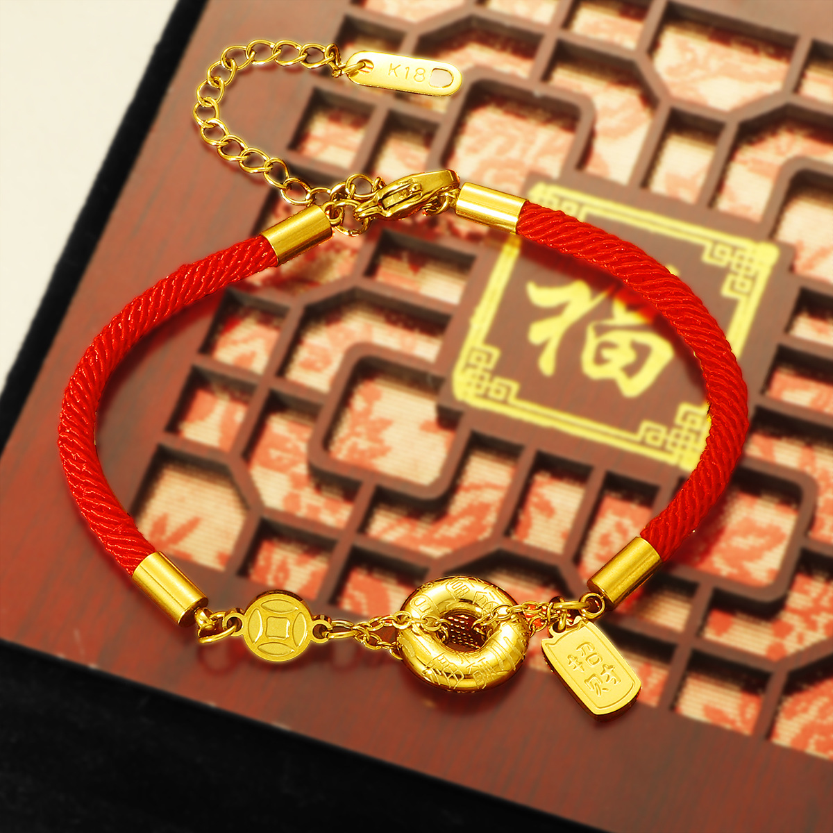 New Entry Light Luxury Safe Buckle Lucky Copper Red Rope Bracelet Women's Benmingnian Titanium Steel Red Rope National Trendy Fashion Hand Rope