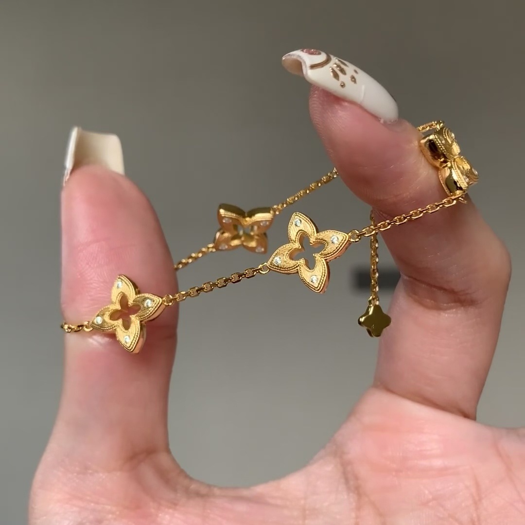 Italian Buccio Style Brushed Four-Leaf Clover Bracelet for Women, Retro Accessible Luxury High-End Flower Gold-Plated Petal Bracelet