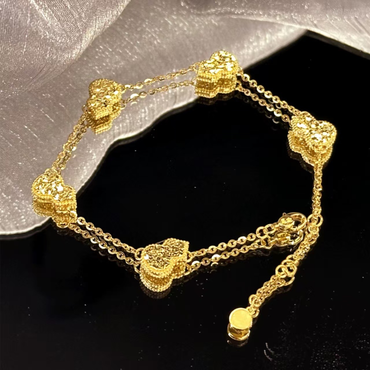 Wholesale Black and White Four-Leaf Clover Bracelet That Does Not Fade, Women's Summer Five-Flower Bracelet, Double-Layer Niche Light Luxury High-End Jewelry