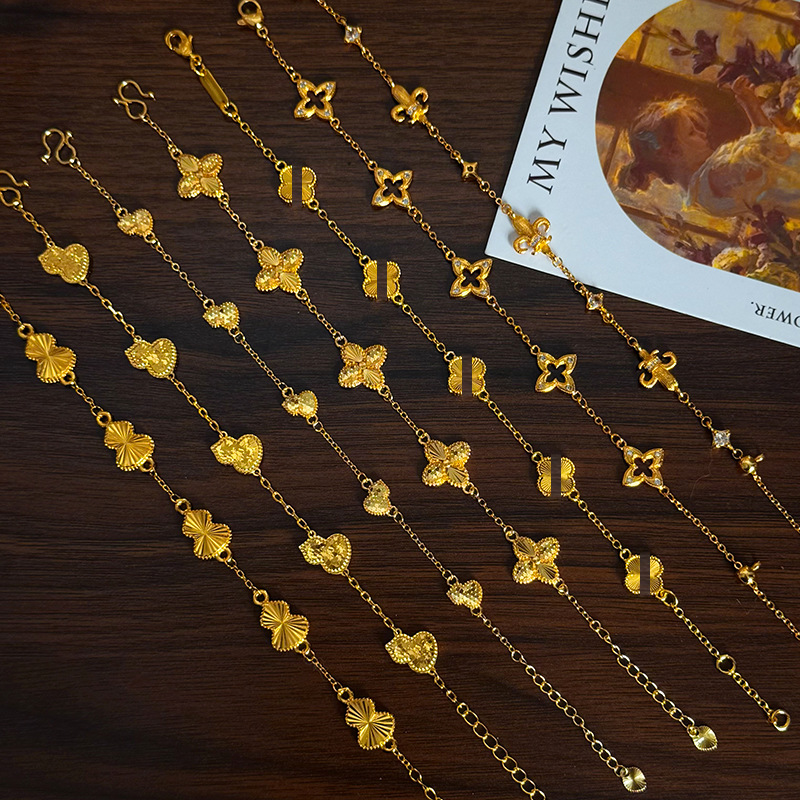 Gold-Plated Exquisite Imitation Gold Bracelet for Women, Various Fashionable Designs, Small Fish, Lucky Clover, Snake Bone, Box Twist Thin Bracelet Supply