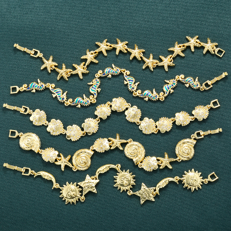 Retro Starfish Seahorse Shell Stitching Bracelet Personalized Bohemian Style Sun Moon Star Bracelet Vl667