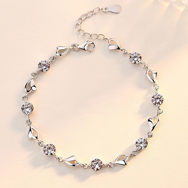 K-Style of the Ocean Heart Literary Blue Crystal Heart-Shaped Zircon Bracelet for Women Niche Elegant Inlaid with Colored Diamonds Heart Hand Jewelry