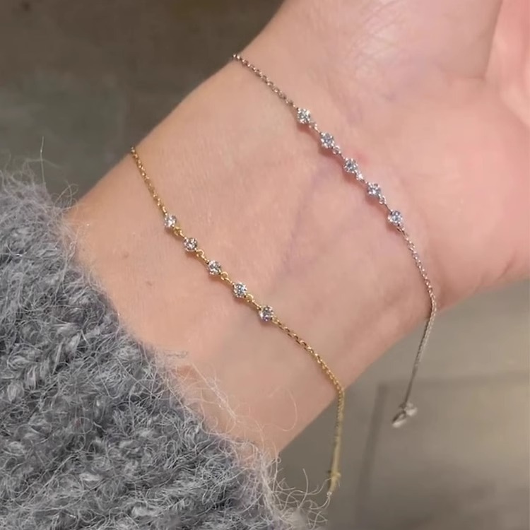 Japanese-Style Light Luxury Diamond Bracelet with Gold-Plated 5-Row Ultra-Fine Diamonds, Stackable and Versatile Jewelry