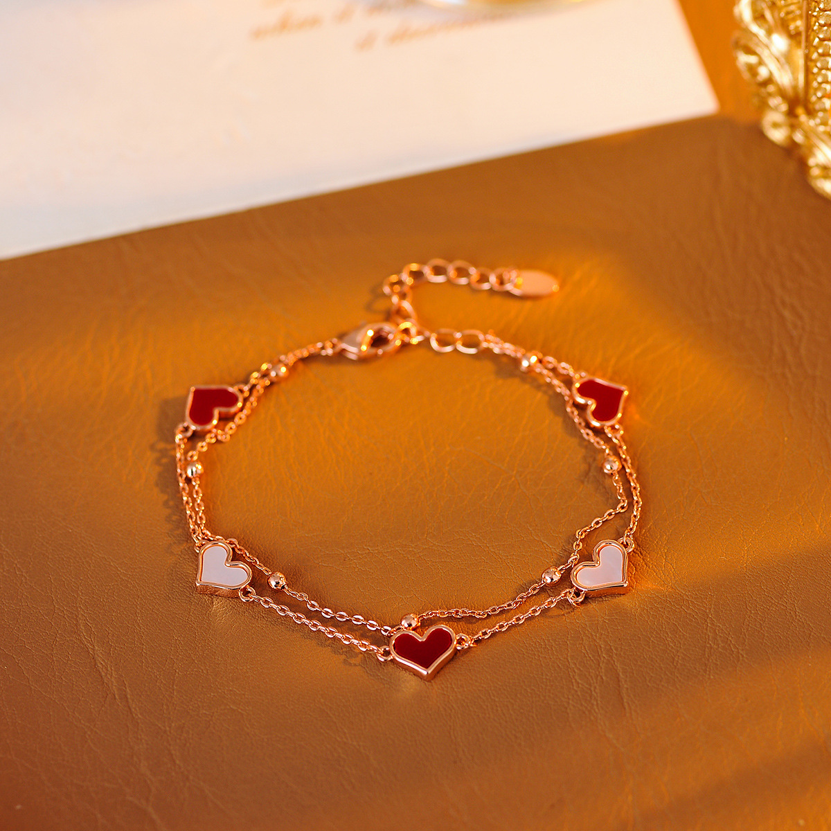 Double-Layer Mother-Of-Pearl Love Bracelet French Retro Versatile Temperament Bracelet Niche High-End Light Luxury Jewelry Wholesale Dropshipping