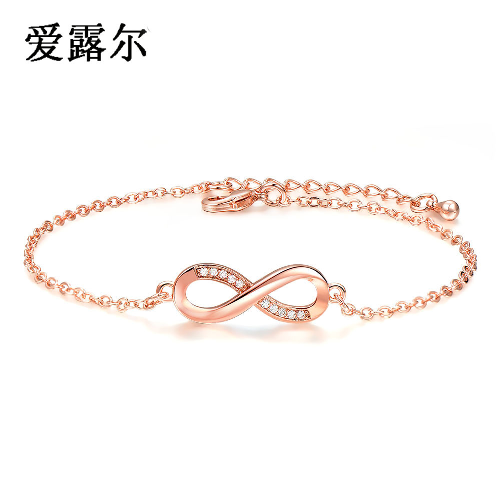 Korean Style Korean Simple Women's Bracelet Lucky Infinite Number 8-Character Bracelet Inlaid with Zircon Fashion Jewelry Wholesale