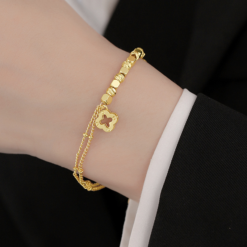 New Chinese Style Fashionable Temperament Versatile Exquisite Four-Leaf Clover Copper Gold-Plated Bracelet Light Luxury High-End Cross-Border Jewelry for Men and Women
