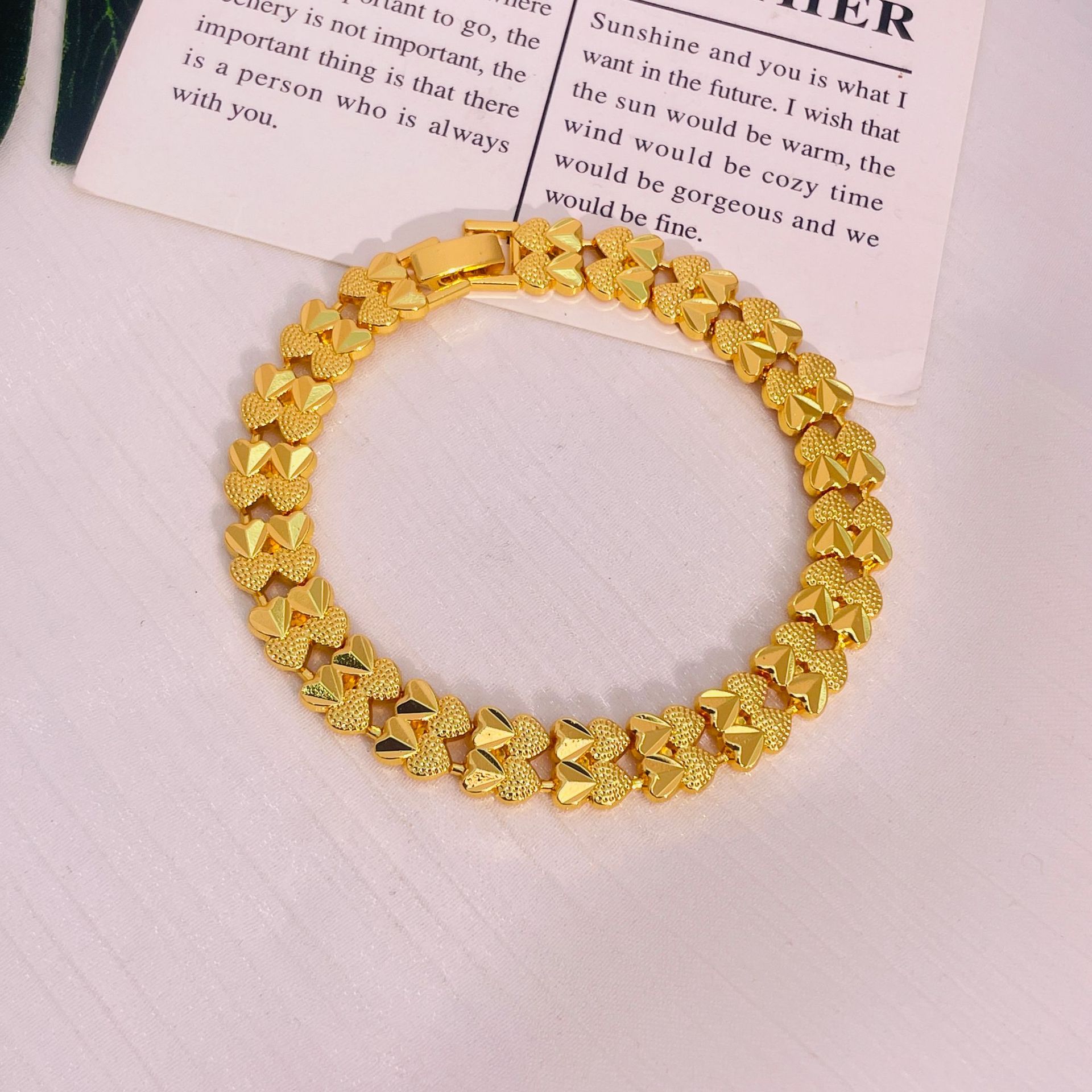 Southeast Asia Cross-Border Popular Copper-Plated 24K Gold Bracelet for Women, Gold Color, Fortune-Attracting, Vintage Jewelry Wholesale