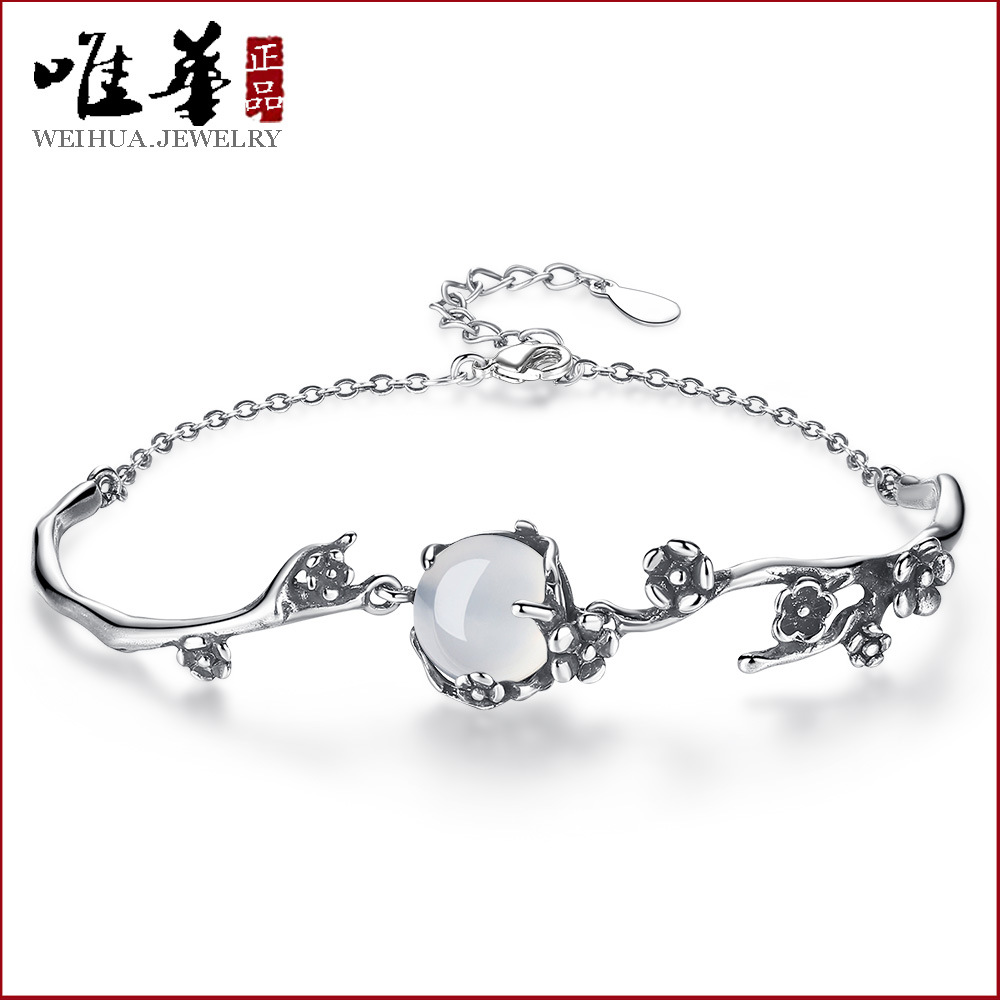 Korean version of the Moon Hanmei Mei bracelet ladies fashion plating Gutai silver moonlight white chalcedony hand jewelry wholesale