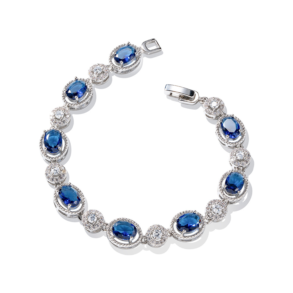Korean Style Blue Zircon Bracelet for Women, Light Luxury, Retro, Exquisite Geometric Oval Bracelet, Temperament Bracelet, Cross-Border Foreign Trade Exclusive