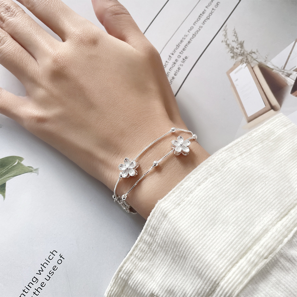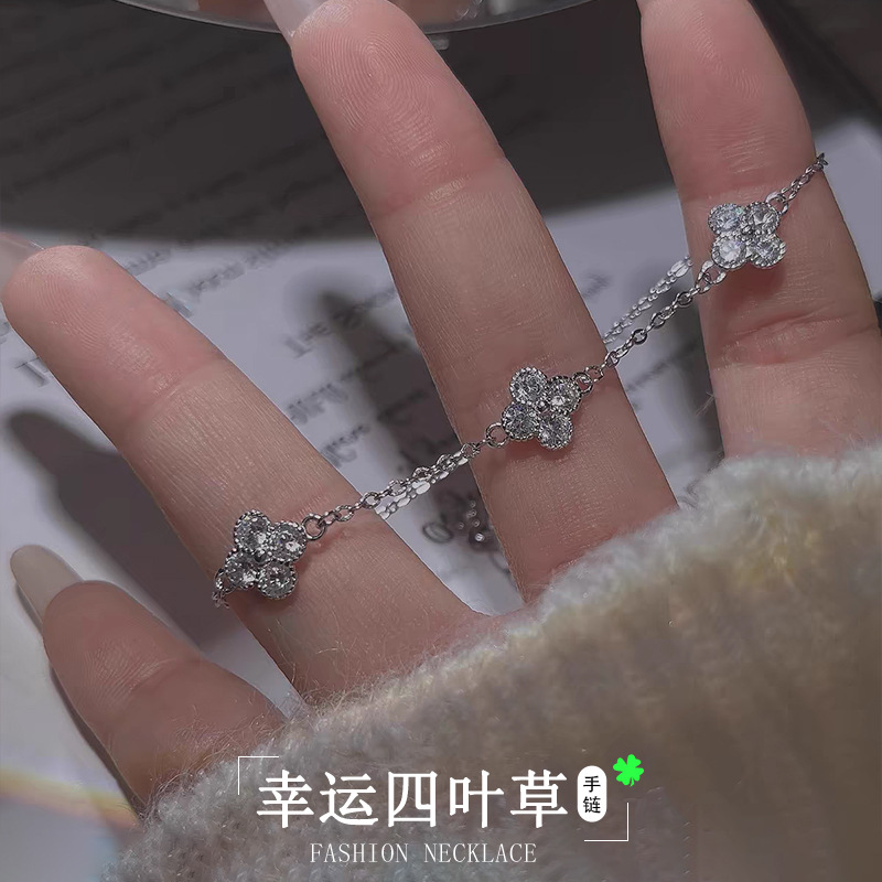 Women's Flower Diamond Bracelet for Students Korean Style Simple and Fresh Ins Girly Heart Four-leaf Clover Bracelet