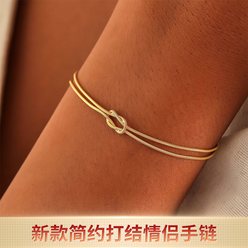 European and American cross-border new simple knotted couple bracelet gold and silver rose gold couple niche design fashion bracelet