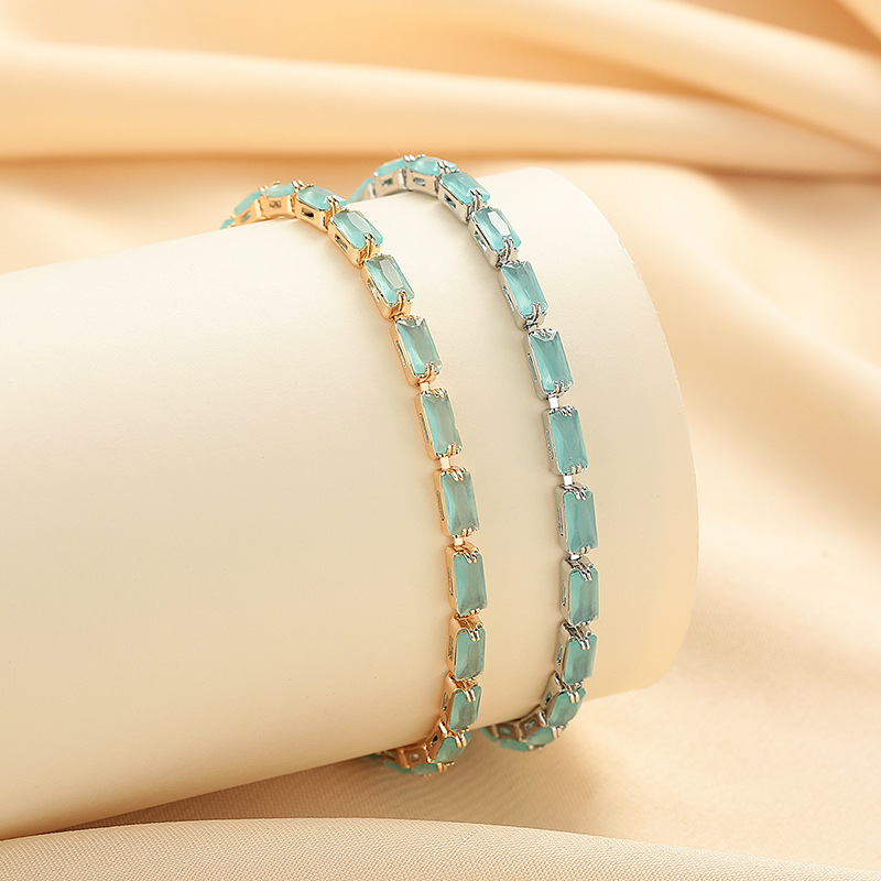 Cross-Border Light Luxury Blue Square Diamond Bracelet Versatile Personalized Handmade Jewelry Crystal Zircon Square Hand Jewelry Factory Wholesale