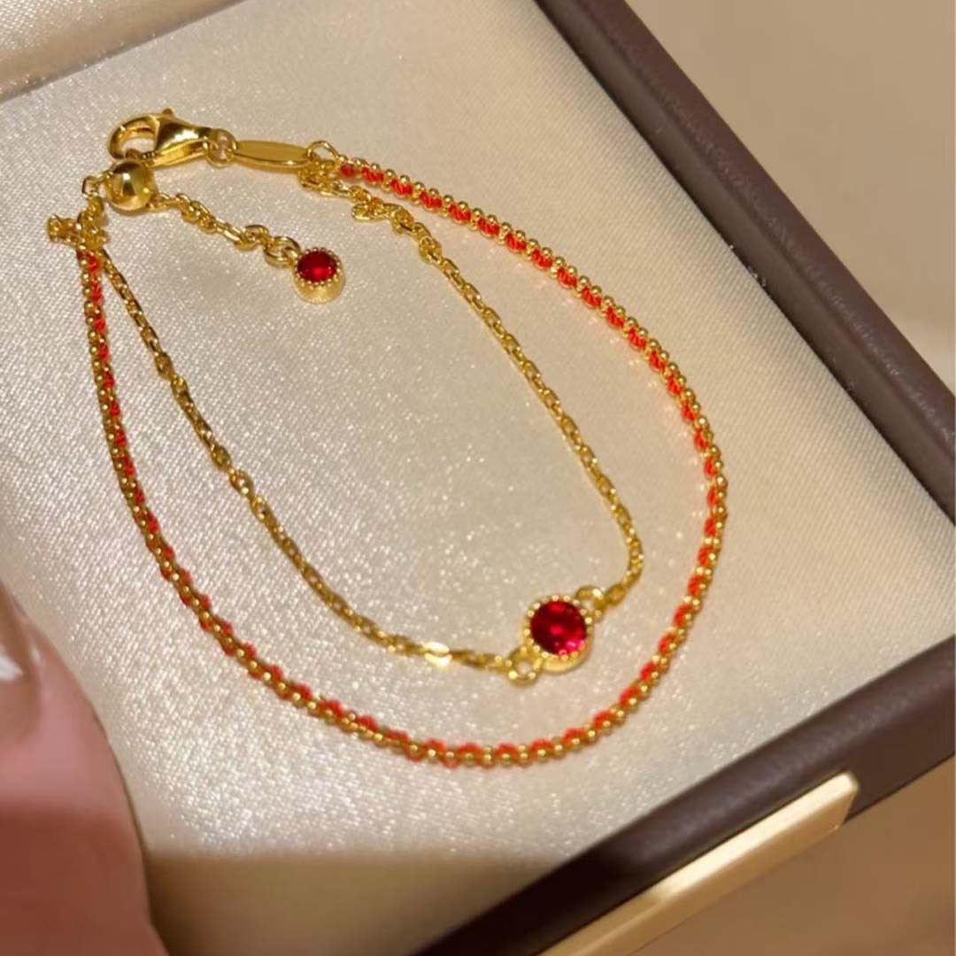 Stacked Hand-Woven Red Diamond Red Rope Gold Bracelet, Fashionable and Versatile, High-End Animal Year Bracelet