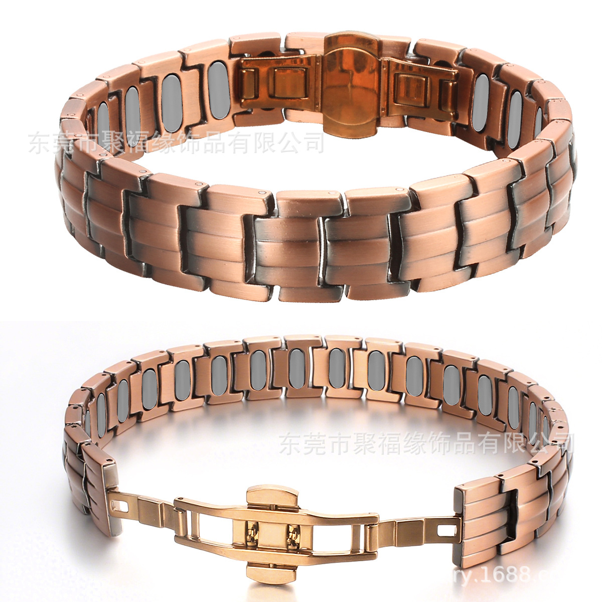 Amazon's New Pure Copper Turtle Back Men's 15mm Thick Square Strong Magnetic Butterfly Clasp Red Copper Bracelet Wholesale from the Manufacturer