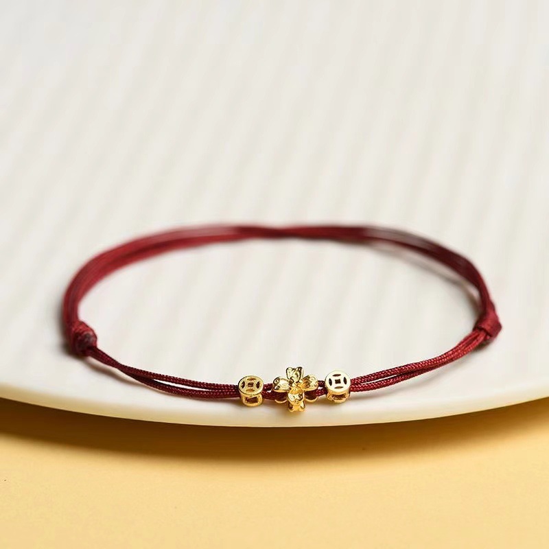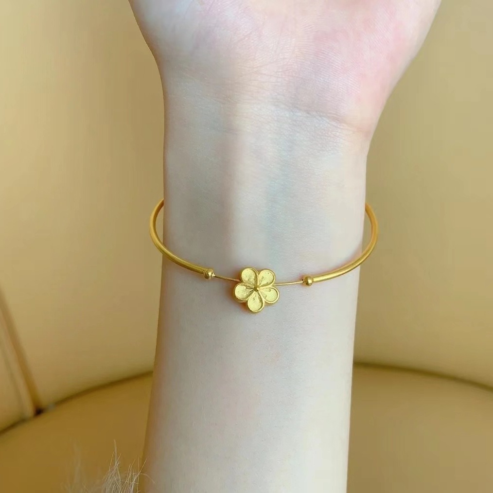 Peach blossom bracelet female niche ins simple high-grade yellow gold bracelet exquisite light luxury style small peach blossom hand jewelry