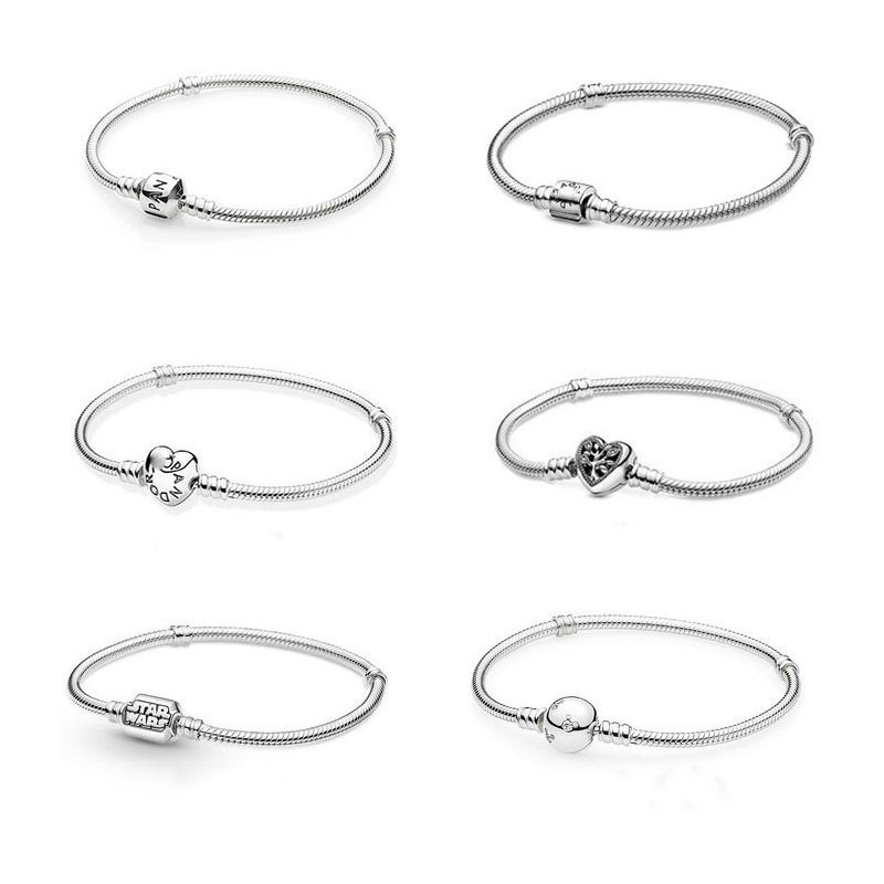 Customized Panjia Bracelet Women's White Copper Plated Thick Silver Bracelet Square Love Leaf Buckle Head Snake Bone Bracelet Fashion Bracelet